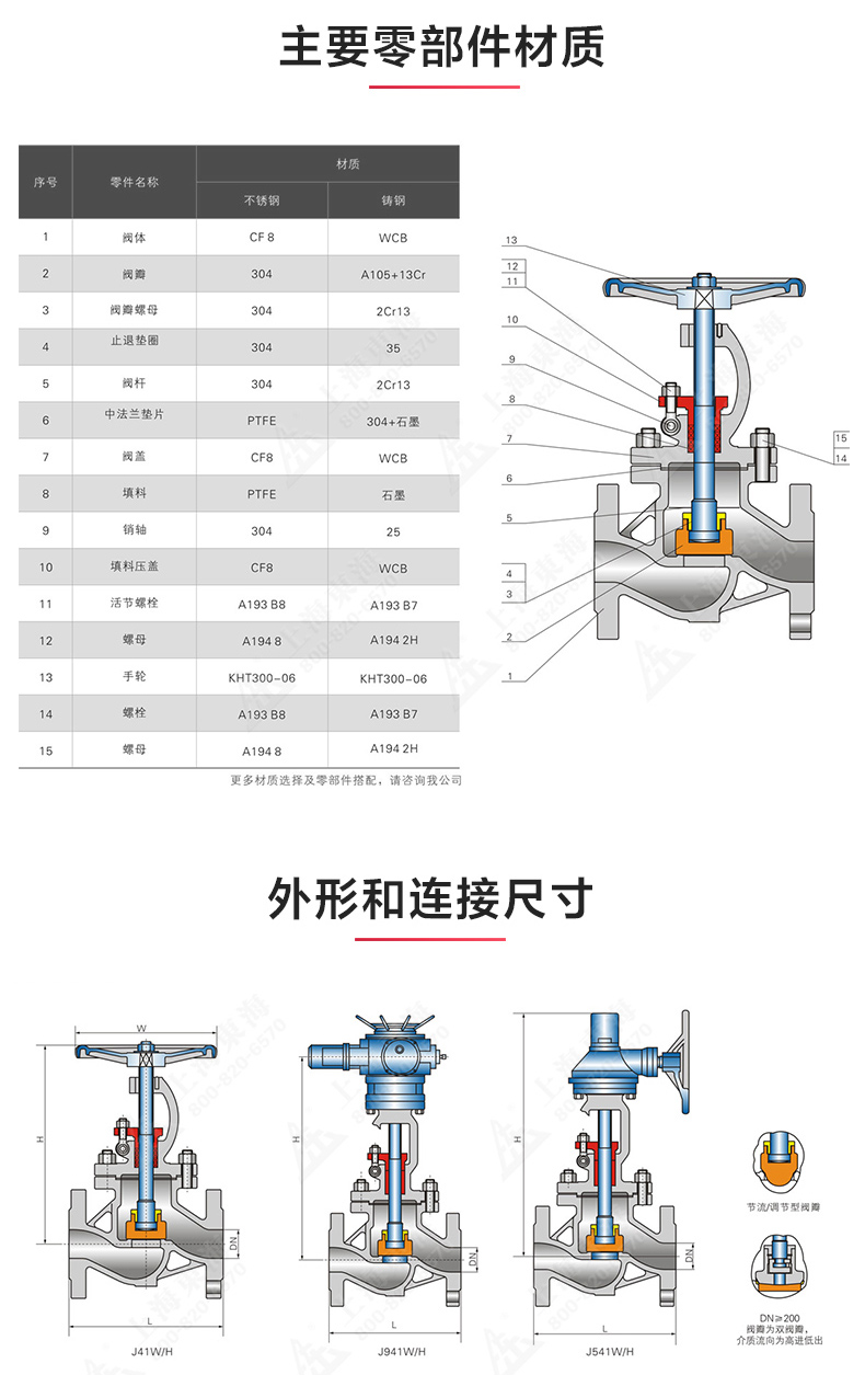 J41型国标不锈钢法兰截止阀, 为半岛官方网站自主研发生产。本产品设计制造标准符合GB/T12235-89标准其启闭件是圆柱形的阀瓣,密封面呈平面或锥面,阀瓣沿流体的中心线作直线运动。国标截止阀只适用于全开和全关,一般不用来调节流量,定做时允许作调节和节流。